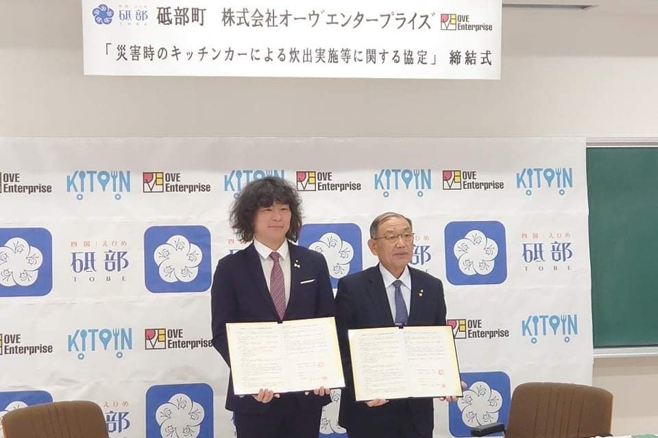 〜砥部町との防災協定締結のお知らせ〜 2021年11月18日 弊社と砥部町との防災協定を締結いたしました。 【災害時のキッチンカーによる炊出し実施などに関する協定】が主な内容です。 キッチンカー専用ポータルサイト【KITPIN】には、災害時に避難場所や物資の充足ステータスなどを表示する機能も備わっており、災害対策にも対応しているサイトとなっております。 みなさまにご利用いただき、災害対策の一つとして備えていただければありがたいと思っております。 少しでも地域に貢献出来るよう頑張ってまいりますので、これからもよろしくお願いします!!